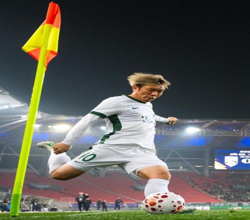 3月8日,北京国安队球员张稀哲在比赛中发角球。新华社记者 肖艺九 摄