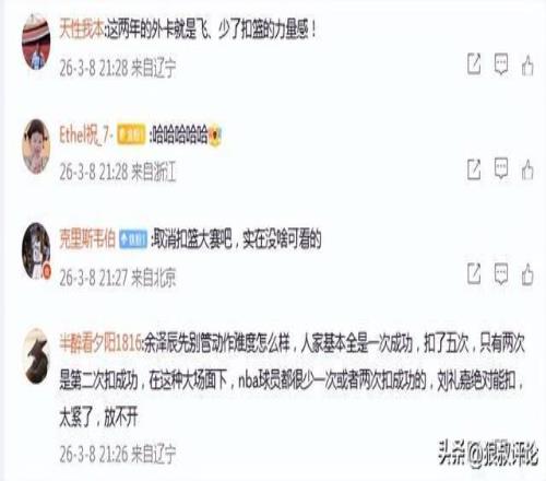 媒体人“周赫”发文点评我再也不想看外卡球员飞跃扣篮了!扣一百次都是一个创意!