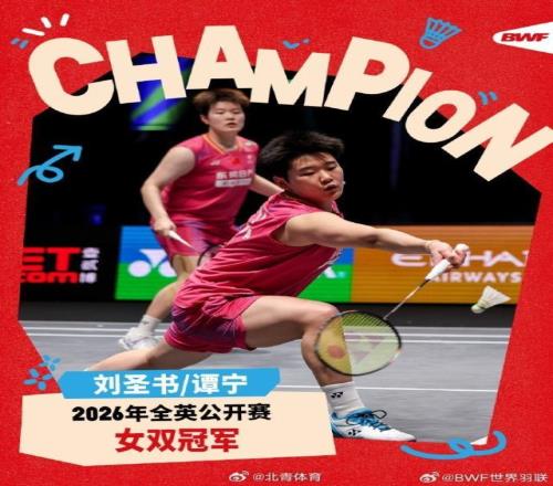 夺冠!羽毛球全英公开赛女双决赛:谭宁/刘圣书2比0李绍希/白荷娜