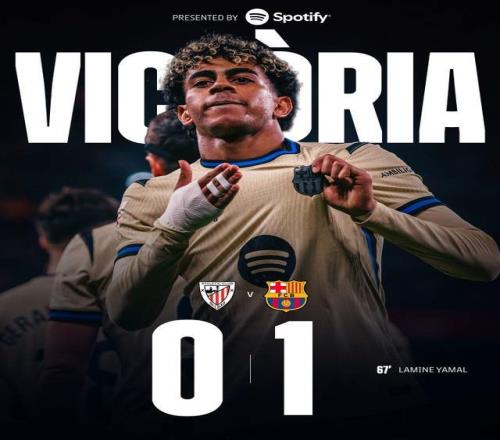 第68分钟,亚马尔用一脚招牌兜射攻破毕尔巴鄂竞技球门时,客队看台巴萨球迷的喜悦压过主场球迷嘘声。1比0巴萨客场带走三分,亚马尔第一功继续在西甲积分榜上,拿到了4分优势。
