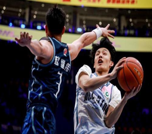 北区明星队球员赵睿(右)在比赛中突破。 新华社记者 孟永民 摄
