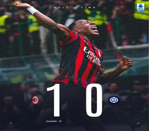 果不其然,缺乏两大进攻利器的蓝黑军团虽然创造出不少得分机会,却始终得势不得分,最有威胁的进攻来自姆希塔良第34分钟长驱直入后的爆射,却难逃迈尼昂的神扑。大难不死必有后福的米兰则趁机发动反击,福法纳精准直塞找到前插的埃斯图皮尼安,后者禁区左侧得球后爆射近角完成破门。这也成了全场唯一进球,最终破门乏力的国米只能吞下失利,将对阵米兰的不胜战绩也延续到七场。