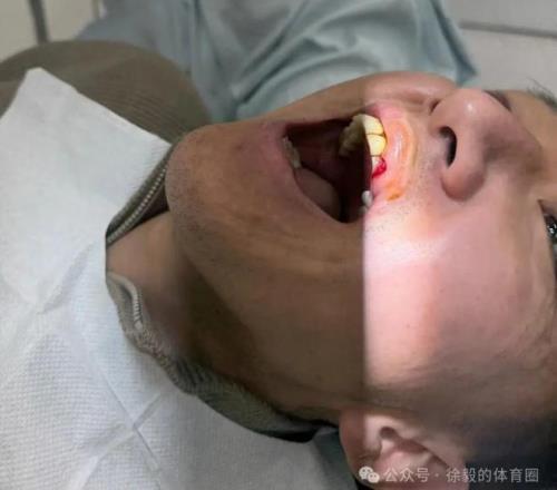 受伤后,高迪嘴里含了块棉花继续上场比赛,一直坚持到比赛结束。赛后,队医陪着高迪去医院进行了治疗,先是给牙齿拍了个片子,然后进行了口腔缝合,一共缝了九针,“除了嘴唇破了之外,有三颗牙齿有点松动,疼得比较明显。”