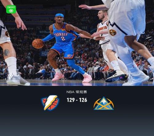第四节雷霆杰林-威廉姆斯拿下9分,掘金约基奇拿下11分,最终雷霆129-126战胜掘金