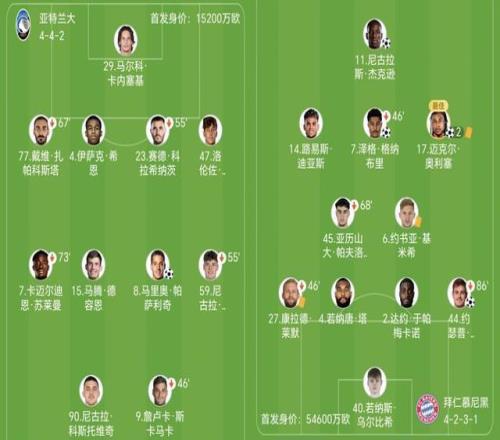 真蓝黑亚特兰大坐镇主场迎来拜仁的挑战,主教练帕拉迪诺派出克尔斯托维奇和斯卡马卡搭档双前锋。