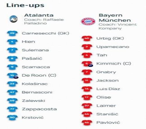 拜仁客战亚特兰大:凯恩替补,雅克松、格纳布里、基米希首发
