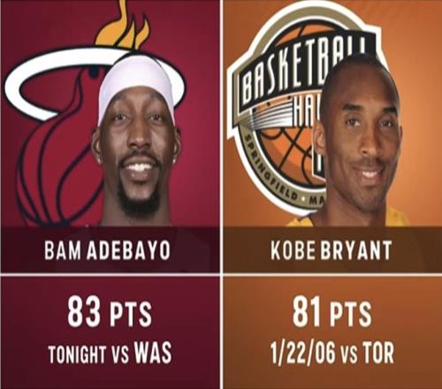 赛后大家都在谈论阿德巴约与科比的纪录,很显然,科比的表现更有含金量,更有参考价值。因为在当年湖人与猛龙的比赛中,湖人以122-104取胜,科比的得分占据了全队的66.4%,而阿德巴约的83分则占了热火全队的55.3%。另外阿德巴约的各项命中率也不及科比,最重要的是,他的罚球太多了,比科比多了23罚,超过了霍华德的单场39罚,创下NBA纪录,单场命中36次罚球同样是历史第一。