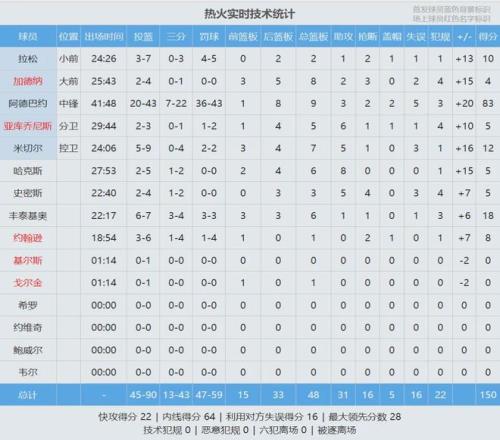 第一节热火40-29领先奇才11分,阿德巴约投篮16中10,三分8中5,罚球7中6,单节砍下31分3篮板1抢断1盖帽。自1996-97赛季有统计以来,阿德巴约首节31分排名历史第二,仅次于乐福的34分。注意:这是首节得分,不是单节。