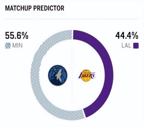 赛前,美媒ESPN对本场比赛进行了胜率预测,森林狼队胜率55.6% ,湖人胜率则仅有44.4% ,劣势明显 。