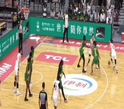 王思雨上场盘活全队,她潇洒的背后运球,然后给到韩旭,后者三分再中!