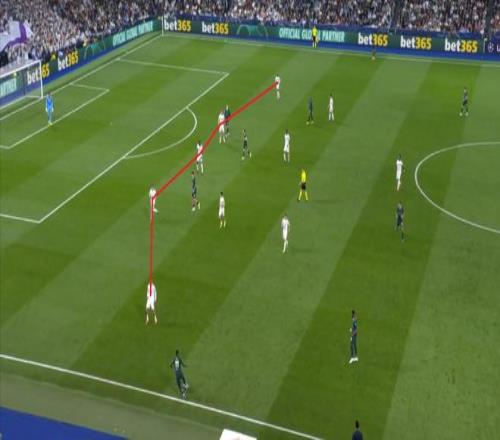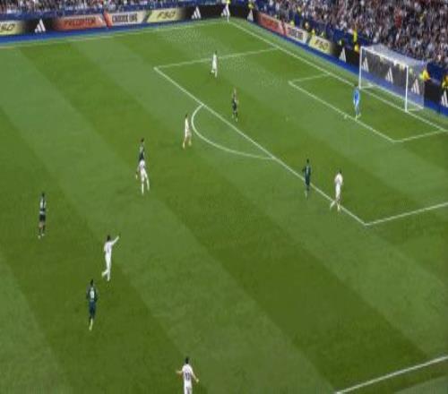 而在第17分钟,皇马则通过门前找到了边路的巴尔韦德,后者回敲之后,继续从罗德里和贝尔纳多-席尔瓦身侧完成了横移:
