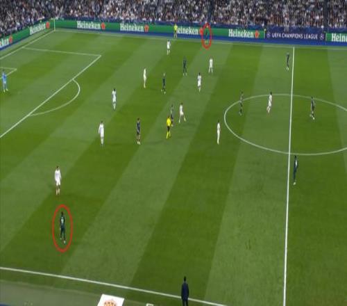 于是,通过压缩空间来限制住曼城的进攻效率之后,皇马的要紧任务就变成了打出反击,尤其是要在这种无中锋的思路下打出反击。
