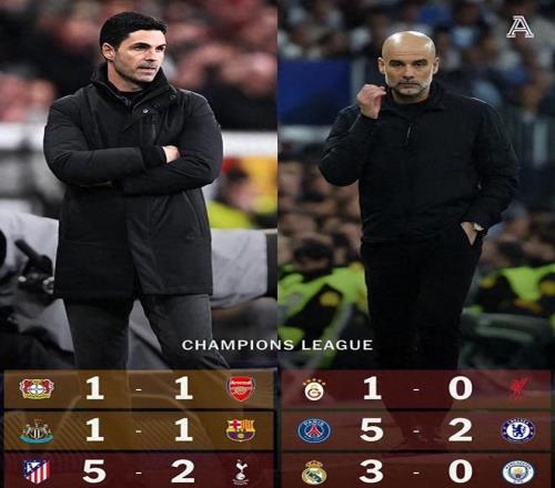 六支参赛队伍中,仅有阿森纳和纽卡斯尔联勉强守住了底线。阿森纳客场1-1战平勒沃库森,纽卡斯尔联同样以1-1逼平巴塞罗那。这两场平局为英超保留了一丝火种,让这两支球队在次回合回到主场时仍握有晋级的主动权。