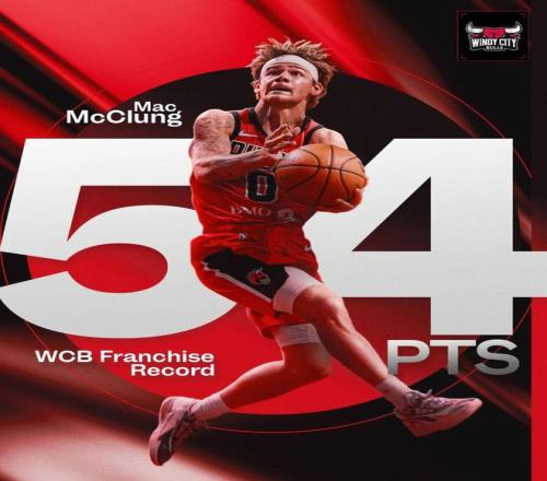 G联赛常规赛,公牛下属球队风城公牛队加时126-127不敌老鹰下属球队科利帕克天鹰队,这场比赛,麦克朗打出夸张表现——全场出战44分钟,投篮34中18,三分18中9,罚球5中5,拿下54分7篮板10助攻。