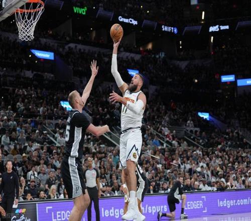 易边再战,掘金在进攻端加强侵略性,穆雷打进2+1,福克斯跳投拿2分,约基奇打进2+1,卡斯尔突破拿2分,布劳恩上罚球线拿2分,约基奇命中3分,分差缩小至11分。瓦塞尔3分命中止血,布劳恩3分再中,老黄忠上篮打进,穆雷技术罚球拿1分,分差只剩6分!卡斯尔命中3分止血,穆雷罚球二中一,布劳恩反击上篮拿2分,哈珀翻身跳投拿2分!约基奇罚球拿2分,哈珀上篮拿2分,马刺连拿6分,约基奇背打拿2分,马刺连拿5分,分差来到15分!穆雷跳投拿2分,两队相继上罚球线拿分,约基奇连拿4分刚缩小分差,福克斯命中3分,哈珀挑篮拿2分,分差再度被拉开。掘金连追4分,巴恩斯罚球拿2分,穆雷拿2分,布莱恩特上篮拿2分,约基奇罚球拿2分,三节打完掘金94-106落后马刺。