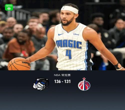加时赛魔术萨格斯拿下5分,奇才库利巴利拿下5分,最终魔术136-131战胜奇才