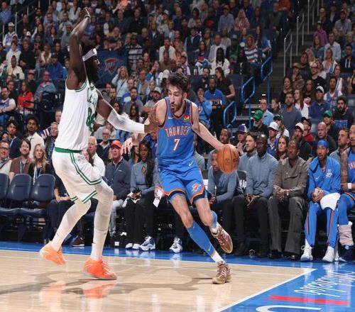 北京时间3月13日,NBA常规赛卫冕冠军雷霆主场对阵凯尔特人,凯尔特人缺少塔图姆、怀特与武切维奇3位主力。雷霆一度落后12分差距,上半场结束追到56-59落后,下半场亚历山大成功达成连续127场得分20+,超越张伯伦独占历史第一。亚历山大率领雷霆在末节逐步反超比分,凯尔特人随后顽强扳平比分,亚历山大与布朗接连关键得分,霍姆格伦之后时刻抢篮板被犯规罚球准绝杀,最终雷霆以104-102逆转战胜凯尔特人豪取7连胜巩固联盟第一,凯尔特人遭遇2连败。