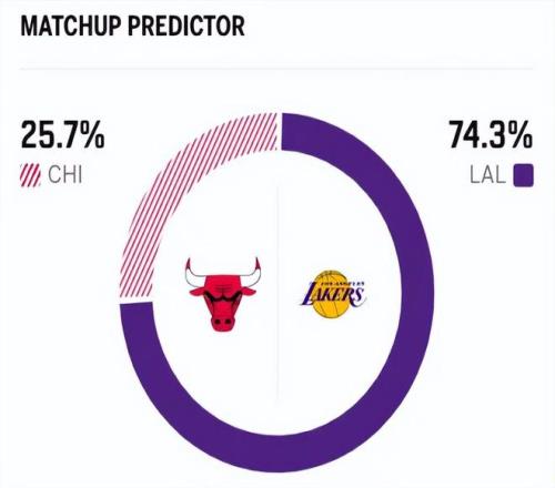 赛前,美媒ESPN对本场比赛进行了胜率预测,湖人队胜率高达74.3% ,公牛胜率则仅有25.7% ,劣势明显 。