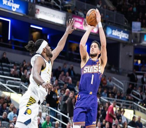 步行者坐镇主场,迎战西部第七的太阳,前者早已被10连败的阴霾笼罩,15胜50负的战绩堪称联盟最惨,而太阳38胜27负的战绩,正朝着季后赛稳步迈进。本场比赛,祖巴茨迎来自己加盟步行者后的首秀,本想凭一己之力为球队止损,却没能挡住太阳后场双枪的轮番轰炸。一开场,两队就杀得难解难分,比分交替上升,祖巴茨一记势大力沉的空接暴扣,瞬间点燃主场球迷的热情,可布克立刻用连投带罚予以回击,丝毫不让步。马卢阿奇的连续补篮,也让步行者短暂看到追分希望,两队你来我往,大打对攻,场面十分激烈。可到了次节,杰伦·格林彻底爆发,连续命中关键得分,带领太阳打出12-0的进攻狂潮,直接确立两位数优势,尽管内姆哈德连中三分试图止血,努力缩小分差,但半场结束,太阳还是以67-61稳稳握有领先。