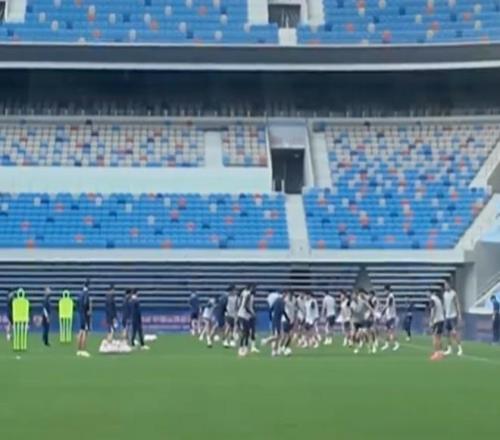 据报道,在赛前新闻发布会结束后,新鹏城全队在球场进行了一个小时的踩场训练。外援阿代米缺席。