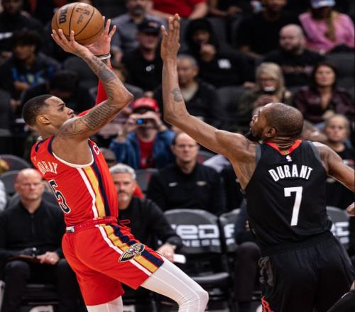 第二节火箭这边谢泼德挺身而出连续命中三分,鹈鹕的玛特科维奇连续大帽杜兰特两个让鹈鹕很涨士气一度缩小到3分,但杜兰特随即命中三分,阿门突破暴扣火箭再度拉开到10分。锡安开始持球突破造杀伤,穆雷三分稳定局势,上半场打完火箭领先8分。