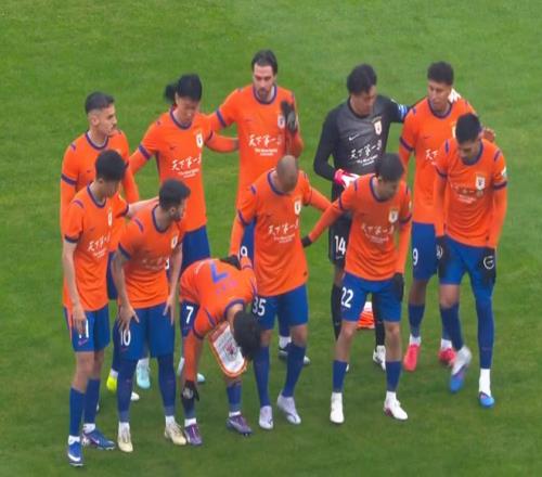 在上赛季的2场泰山跟国安之间的比赛中,两支球队均在主场打进6球,国安以6-1取胜,泰山6-0复仇,这2场比赛的结果都令人感到吃惊。在今日的比赛中,上半场双方0-0互交白卷。两队球员都将精力投入到了身体对抗上,进行中场绞杀,比赛成了肉搏战,再加上还下着雨,比赛的观赏性没那么高,但强度拉满。