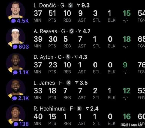 然而,即便如此,外界仍有不少质疑之声,认为詹姆斯的存在会限制队友的发挥。但看看昨日,詹姆斯不仅没有“拖累”队友,反而助力东契奇狂砍51分,里夫斯也有30分入账,艾顿更是交出了23分加10个篮板的亮眼数据。这样的表现,难道还能说是詹姆斯废队友吗?