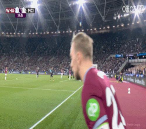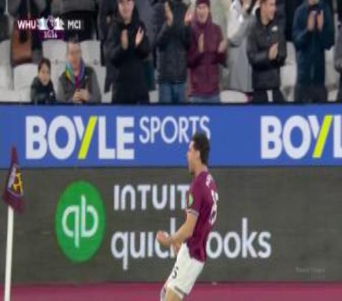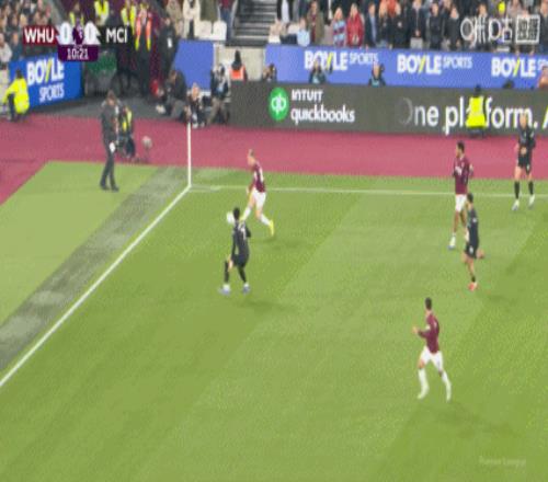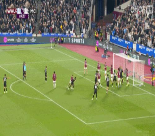 第35分钟,西汉姆联右侧角球机会,鲍文将球送到门前,多纳鲁马出击没有碰到,马夫罗帕诺斯头球攻门,这球击中横梁下沿进入球门,西汉姆联1-1曼城。↓