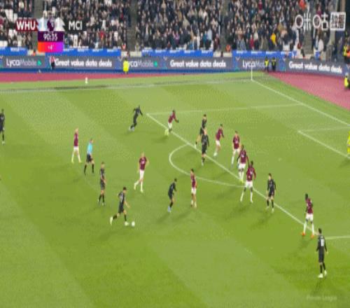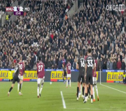 全场比赛结束,最终曼城1-1西汉姆联。