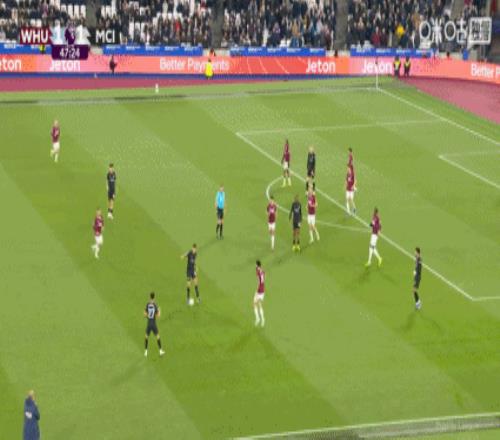 上半场伤停补时2分钟,半场结束,曼城暂1-1西汉姆联。
