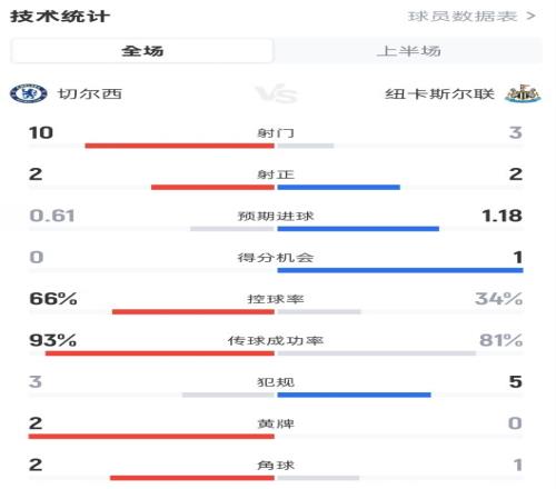 体育播报3月15日宣 英超第30轮,切尔西半场暂0-1纽卡斯尔联。