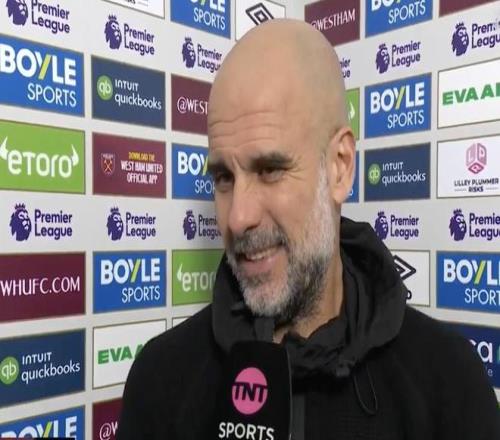 英超第30轮,曼城客场1-1战平西汉姆联,赛后,曼城主帅瓜迪奥拉接受了TNT体育的采访。