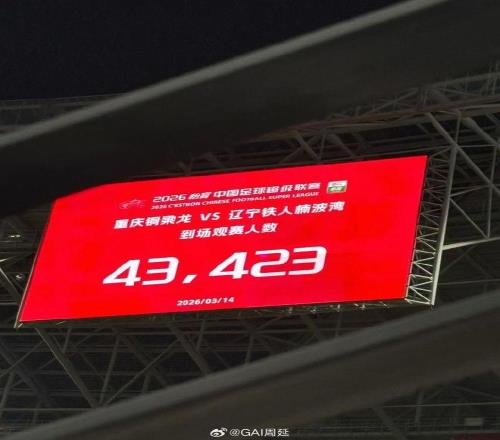 北京时间3月14日,中超第2轮,重庆铜梁龙在龙兴足球场迎来中超首个主场的比赛,面对同样是升班马的辽宁铁人,根据本场比赛现场播报,本场比赛共有43423人来到现场观战。