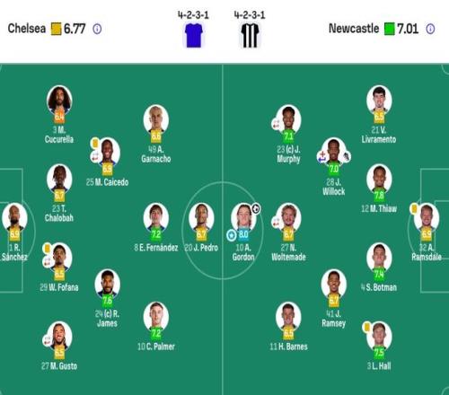 纽卡斯尔联首发:32-拉姆斯代尔、12-佳夫、4-博特曼、21-利夫拉门托、3-霍尔、28-威洛克(77' 33-丹·伯恩)、41-雅各布·拉姆塞、23-雅各布·墨菲(78' 20-伊兰加)、11-巴恩斯、27-沃尔特马德(67' 7-乔林顿)、10-戈登