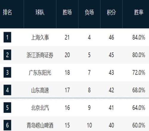 北控则巩固住了第12的位置,这轮他们击败了天津,并且领先第13的广州一个胜场。现在广州已经两连败了,他们要抓紧点了。