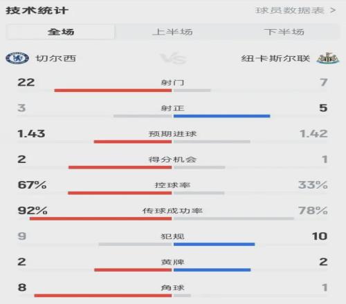 战术硬伤:无效传控成瘾,攻防脱节致被动。全场数据呈现诡异反差:切尔西控球率67%、射门22脚,碾压纽卡的33%控球率和7脚射门,传球成功率92%也远超对手的78%,但这样的“优势”却未能转化为进球,反而被对手抓住一次反击一剑封喉。第18分钟,利夫拉门托直塞、威洛克横传助攻队友破门,这粒简洁高效的反击进球,狠狠戳破了切尔西传控战术的伪善面纱。球迷的吐槽直击要害:“别tm踢传控了,没这个能力懂不懂?能完美踢传控的也就巅峰巴萨西班牙了,你破车这帮什么人?也硬踢传控!” 蓝军的传控始终停留在“无效倒脚”层面,恩佐远射击中队友、里斯·詹姆斯任意球偏出、下半场击中立柱,看似运气不佳,实则是战术适配性不足、进攻缺乏穿透力的真实写照。
