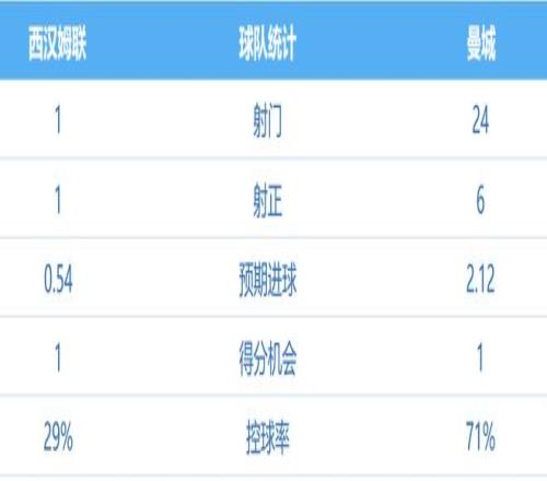 虽然西汉姆整场下来就1次射门,然而他们密集布置好自己禁区扎篱笆的对策,及其成功了。曼城射门是多,可效率低下。全场71%控球率加上91%的传球成功率及15次角球机会,居然只是造出1次极佳得分机会,只打出6次的射正数据。由此可见瓜迪奥拉的徒弟们,制造机会、把握射门契机表现真的太差太差了。