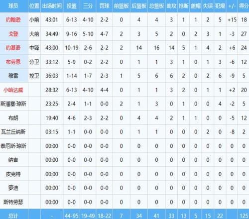 掘金那边“湖人克星”穆雷严重失准投篮14中1只得到5分6板6助,约基奇24分16板14助大号三双外加5断难救主,屡次贡献英雄球的戈登27分5板2助功亏一篑。