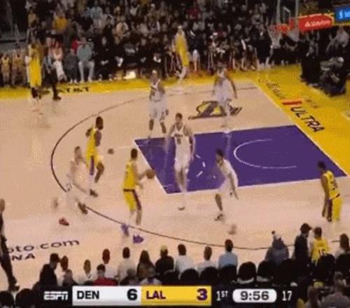 西部强强对话,两队均全主力出战,上半场湖人61-50掘金。