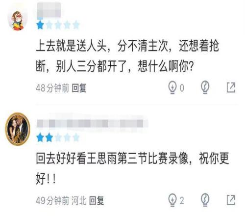 光漂亮有啥用5中1+正负值最低,球迷:回去看王思雨的比赛录像