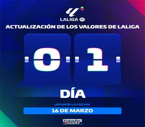 德转官方宣布,西甲球员的市场估价即将更新,具体更新时间为明天20点(北京时间)。