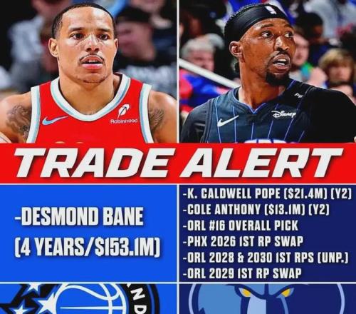 去年夏天休赛期魔术送出波普+科尔-安东尼+四个无保护首轮签+一个29年首轮互换权,才从灰熊那里挖来贝恩。