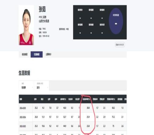 三场比赛,张茹共出战两场,累计出手7次只命中1球,场均得分数仅为1.5分,且在比赛中多次出现空位不出手的情况。