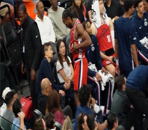 不像脚踝!小卡表情痛苦捂着自己的腰腹部离场并高举双手进行伸展