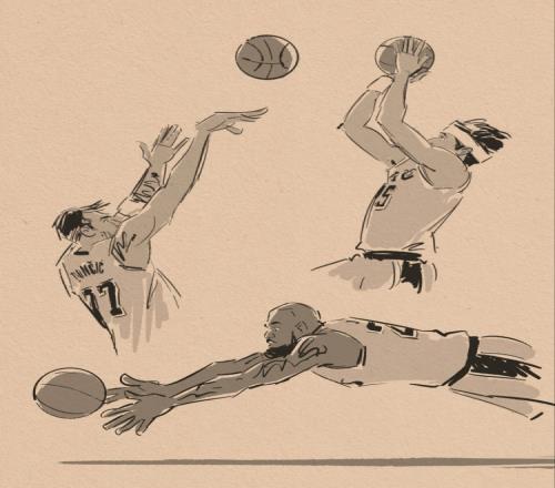 本场第四节詹姆斯飞身救球提振士气,里夫斯常规时间最后时刻1+2神奇绝平,东契奇加时赛撤步跳投准绝杀!