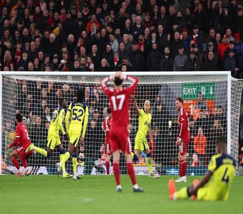 然而就在面对这样一支士气低迷的“残阵”热刺,利物浦却在主场破门乏术,仅仅是依靠索博斯洛伊的任意球打进1球。在迟迟没有取得更多进球锁定胜局后,利物浦也付出代价。