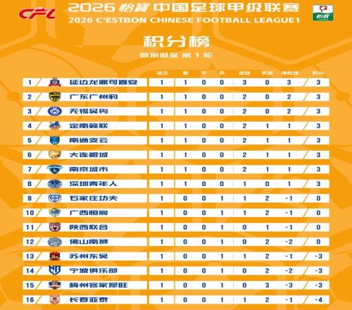 需要说明的是,长春亚泰、梅州客家分别是-4分、-3分开局,这无疑让他们雪上加霜。另外2支负分开局的球队宁波队、苏州东吴,首轮也告负。其中,宁波队在揭幕战中客场0-2完败冲超热门广东广州豹,苏州东吴则主场1-2不敌远道而来的大连鲲城。他们的积分也都停留在-3分。
