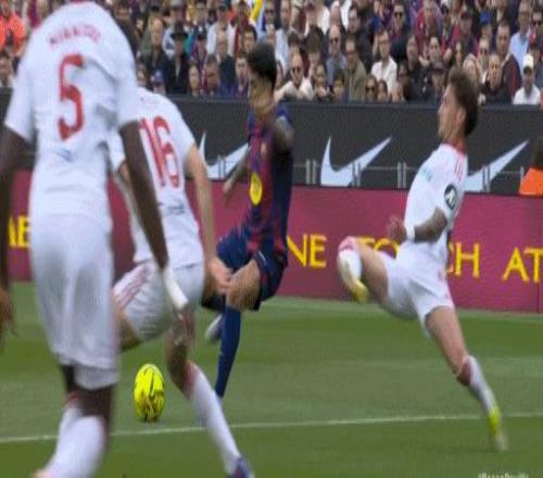 第21分钟,坎塞洛造手球,拉菲尼亚点球双响,巴萨2-0领先塞维利亚!
