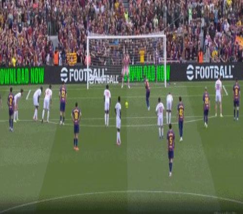 第9分钟,坎塞洛造点,拉菲尼亚打进勺子点球,巴萨1-0塞维利亚