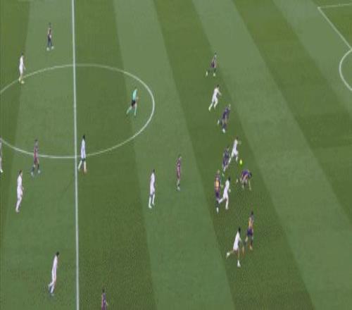 第38分钟,贝尔纳尔传球发生折射,奥尔莫破门,巴萨3-0塞维利亚